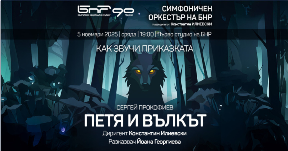 "Как звучи приказката" ще покаже Симфоничният оркестър на БНР на 5 ноември, сряда, от 19:00 ч в Първо студио на Радиото. Под палката на главния диригент Константин Илиевски Радиосимфониците ще заведат децата на чаканото музикално пътешествие с "Петя и вълкът" от Сергей Прокофиев.