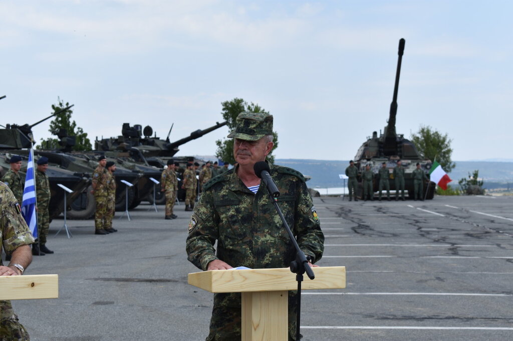 „Точно в момента бойната група е в отлична позиция да може да нарасне, да се надгради до ниво бригада“, заяви на полигона Ново село адмирал Джузепе Каво Драгоне, председател на Военния комитет на НАТО.