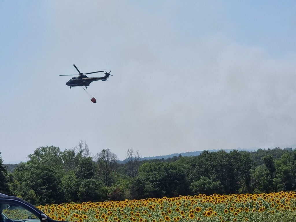 „Това което се прави в момента е един булдозер изкопава просеки, за да може до края на деня да се стигне до огнището, което върви за да се локализира пожара до довечера.“