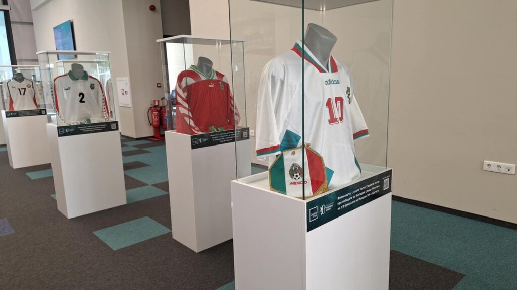 В изложбата могат да се видят още екипът на Христо Стоичков от Мондиал’98, бутонките на Красимир Балъков от САЩ’94, бутонки на Димитър Бербатов от официален мач на Манчестър Юнайтед, плакет от Евро’96, както и сакът на Динко Дерменджиев от Мондиал’66 – запазен в отлично състояние и показван пред публика за първи път и други.