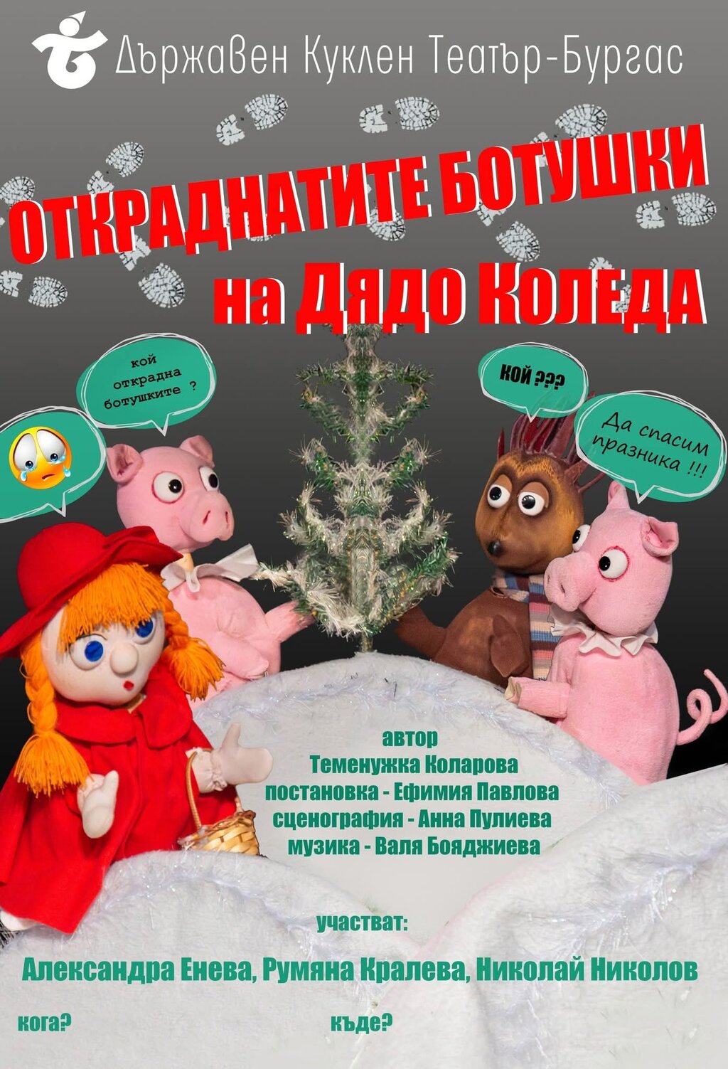 Спектакълът "Откраднатите ботушки на Дядо Коледа" ще бъде игран днес в Държавен куклен театър - Бургас.