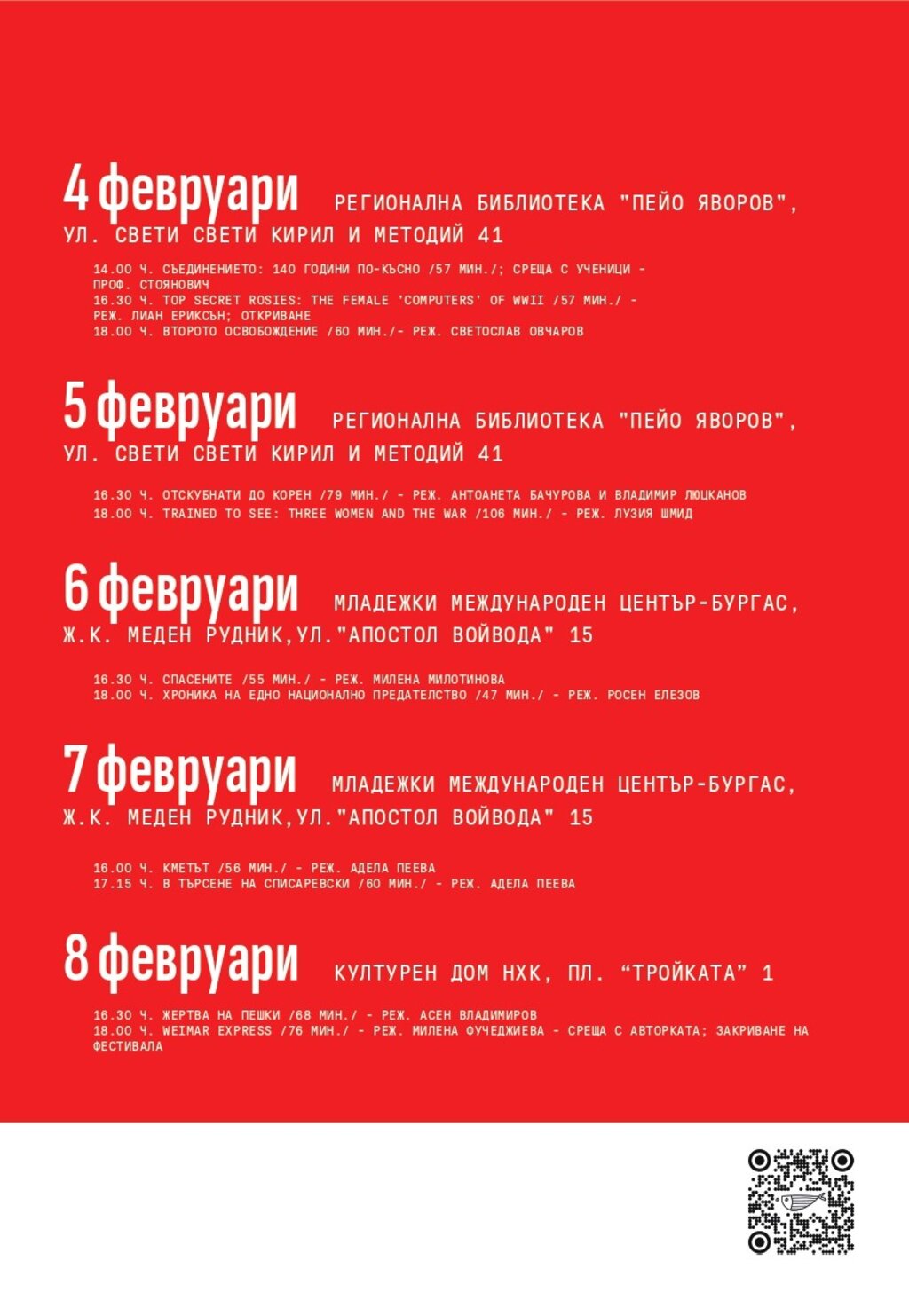 През февруари 2026 година Бургас ще бъде домакин на зимното издание на фестивала за историческото документално кино – специален формат, който разширява и надгражда основния фестивал, провеждащ се традиционно в периода 17–22 септември.