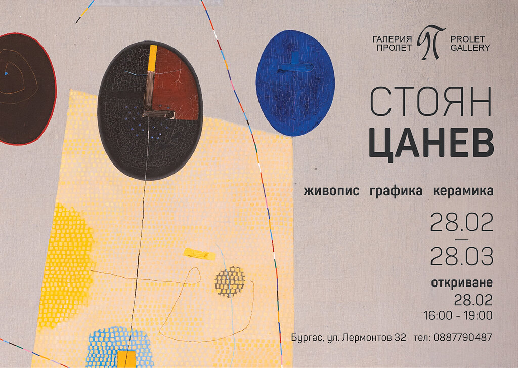 Изложбата с живопис, графика и керамика на Стоян Цанев ще бъде открита от 14.00-19.00ч., в бургаската галерия „Пролет“ и ще остане там един месец. Произведенията на космополитния художник са предоставени за експозицията от колекционери на неговото творчество.