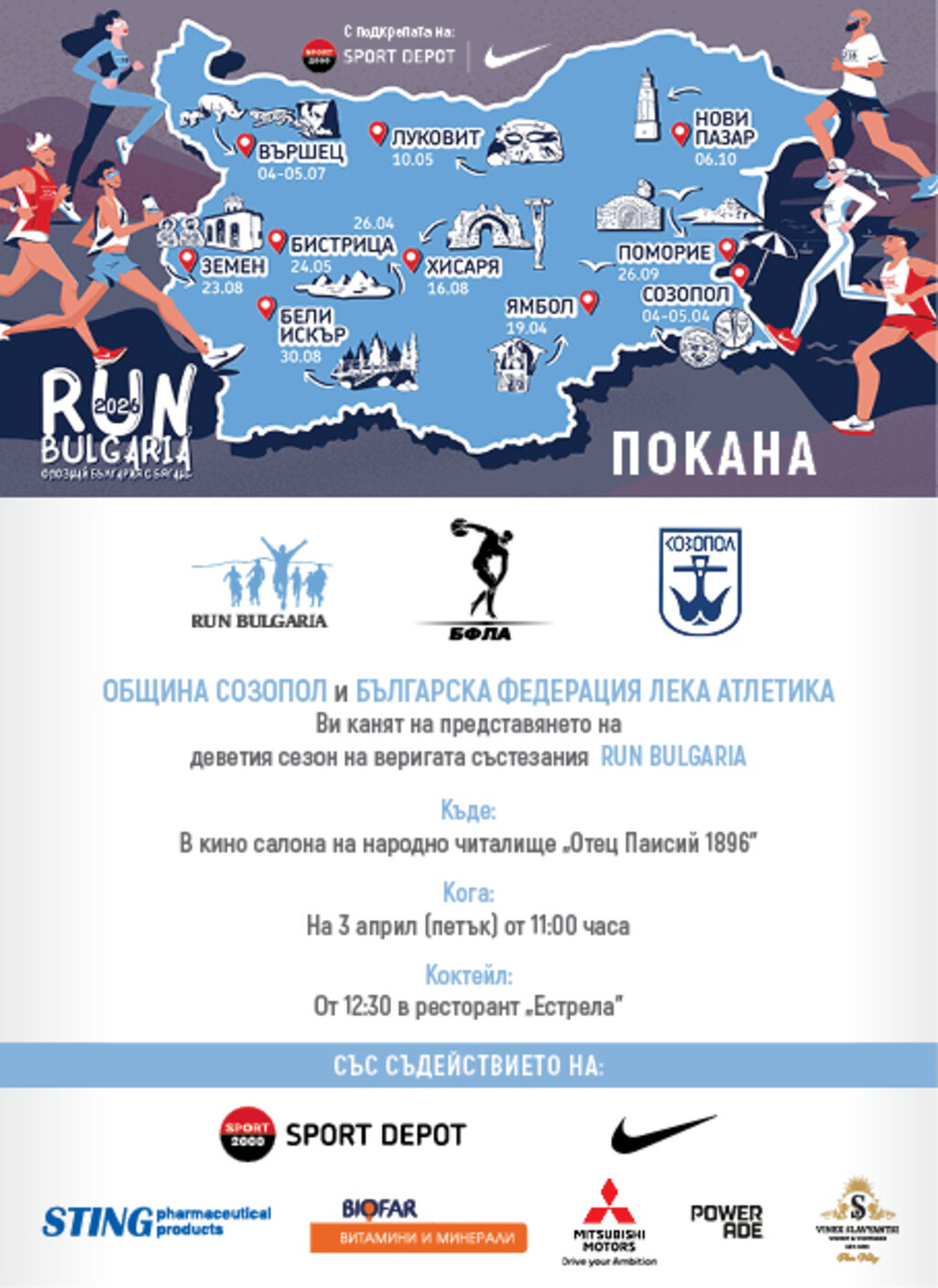 На 4 и 5 април в града ще има мащабно бягане и атрактивно автомобилно състезание. Проявите, организирани със съдействието на Община Созопол, целят да утвърдят морския град като атрактивна дестинация за спортен туризъм и да разширят летния сезон.