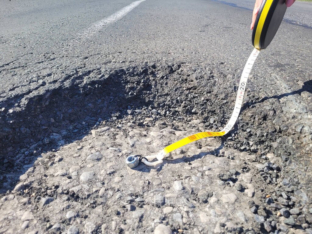 След прекратяването на ремонтните дейности, аз си направих труда отново да измина цялото трасе, измерих дупки, а най-фрапиращата е с 5 метра дължина, 2 метра широчина и 10 сантиметра дълбочина. Можете да се представите, това е половината пътно плътно. Имаше дупки с дълбочина 15 сантиметра, просто това е нечувано безобразие.