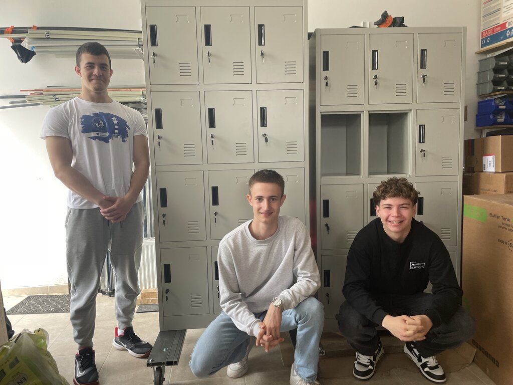 Спечелихме един конкурс и ни беше предоставена награда в размер на чист капитал 1000 лева. С тях всъщност закупихме тези две структури, които са прототипи. Работят възможно най-просто, защото това беше първоначалната концепция. Ако има други бизнес и предприемачески насочени слушатели, те ще разберат какво е MVP, но това нещо представлява всъщност най-базовата функция на нашата услуга. Може да видим просто 12 едноразмерни клетки с ключалки, които в момента всъщност се опитваме да оптимизираме, за да можем да автоматизираме процеса, за да не изисква друга работна ръка.