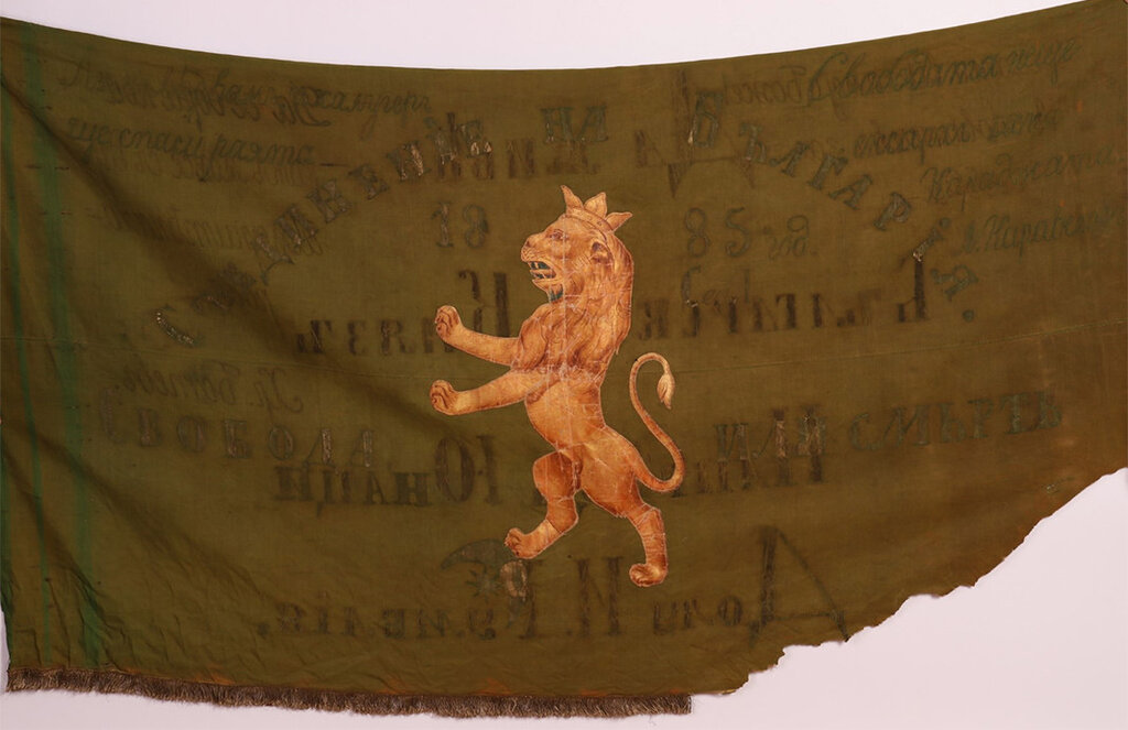 „Die Fahne ist aus 3 Metern grüner Seide gefertigt. Zuerst gaben die Aktivisten des Komitees von Goljamo Konare das Tuch dem bulgarischen Künstler und Revolutionär Georgi Dantschow und er hat in seinem Atelier in Plowdiw einen aufrechten Löwen mit einer Krone auf dem Kopf darauf gemalt. Der Löwe steht auf den Symbolen des Osmanischen Reiches - Halbmond und Stern“, so Rumjana Donewaweiter in einem Interview für „Radio Bulgarien“. „Dieser Löwe schien ihnen aber nicht genug und als sie den Stoff Nedjalka Schilewa überreichten, damit sie eine Fahne daraus näht, baten sie sie, einige patriotische Worte darauf zu schreiben. Sie verzierte die Fahne, indem sie mit Ölfarbe „Vereinigung Bulgariens“, „Freiheit oder Tod“ und das Jahr 1885 darauf schrieb.