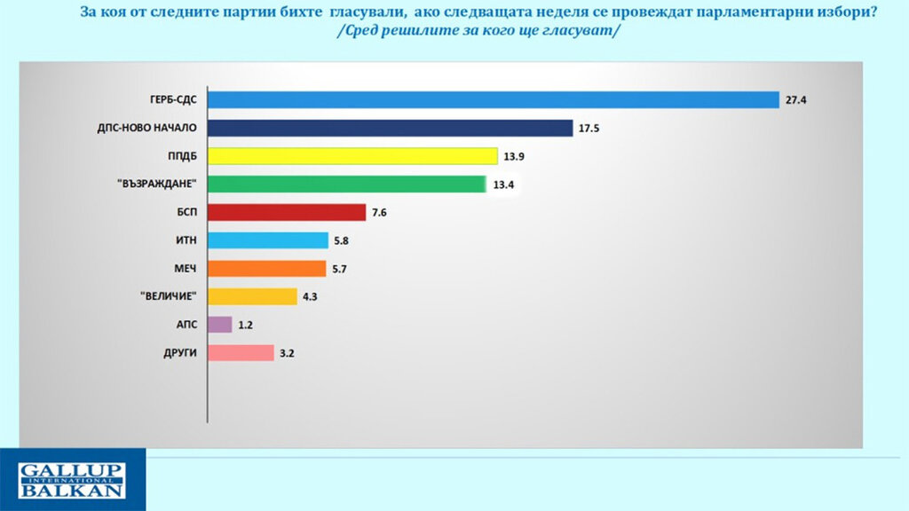 Bei vorgezogenen Wahlen würden fast ein Drittel der wahlberechtigten Bulgaren die Koalition GERB-SDS unterstützen – 27,4 Prozent.