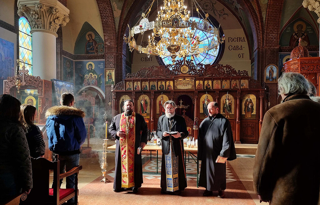 Vater Ljubomir Leontinov (Mitte) während des Gottesdienstes
