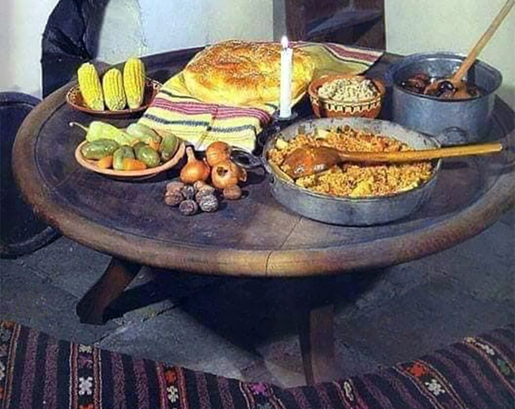 Man lud den Herrn oder die Jungfrau Maria ein, vom Himmel herabzusteigen und mit den Lebenden an der festlichen Tafel zu speisen. Die Hausherren ließen einen leeren Platz am Tisch für die verstorbenen Lieben, für die Seelen im Jenseits, für den Herrgott oder die Jungfrau Maria.