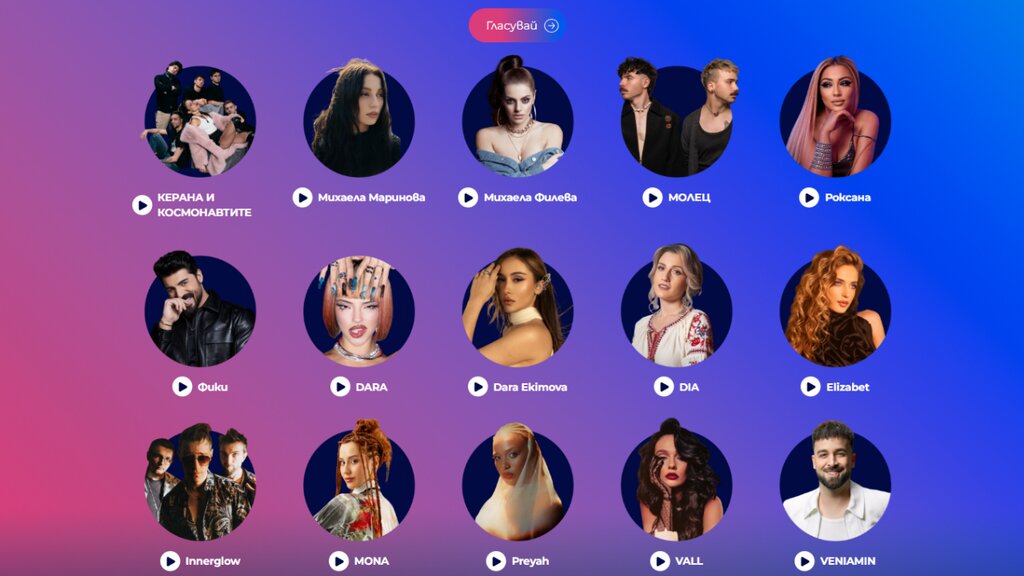 Στο κάστινγκ συμμετέχουν κάποια από τα πιο αναγνωρίσιμα ονόματα της βουλγαρικής σκηνής – η Κεράνα και οι Αστροναύτες, η Μιχαέλα Μαρίνοβα, η Μιχαέλα Φίλεβα, το γκρουπ «Μολέτς», η Ροξάνα, ο Φίκι, η DARA, η Dara Ekimova, η DIA, η Elizabet, οι Innerglow, η MONA, η Preyah, η VALL και ο Veniamin. Στην πραγματικότητα, πρόκειται για κάποιες από τις φωνές που ακούγονταν περισσότερο στον ραδιοφωνικό και τον τηλεοπτικό αέρα φέτος και που σημείωσαν σημαντική παρουσία στις πλατφόρμες streaming Spotify, Apple Music και YouTube και ουσιώδεις κοινωνικούς δείκτες, εξηγούν από τη ΒΕΤ. Στην επίσημη πλατφόρμα eurovision2026.bg οι λάτρεις μπορούν να μάθουν περισσότερα για τον καθένα από τους ερμηνευτές μέσω των ατομικών προφίλ τους και επιπρόσθετων πληροφοριών για τη συμμετοχή τους.
