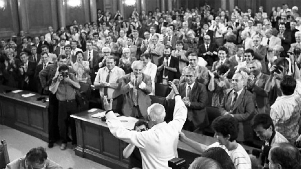 «Η Μεγάλη Εθνοσυνέλευση ήταν ένα πραγματικά αντιπροσωπευτικό δείγμα της κοινωνίας -ήταν οι κρατούμενοι και οι δήμιοί τους, οι καλύτεροι συγγραφείς και μουσικοί- όπως ο Βαλέρι Πετρόφ, ο Κίριλ Μάριτσκοφ κ.λπ. Συντάξαμε ένα ευρωπαϊκό σύνταγμα. Το πρώτο του μέρος είναι από τον Χάρτη των Θεμελιωδών Δικαιωμάτων της ΕΕ - ελευθερία του λόγου, του Τύπου, των ταξιδιών κ.λπ.».