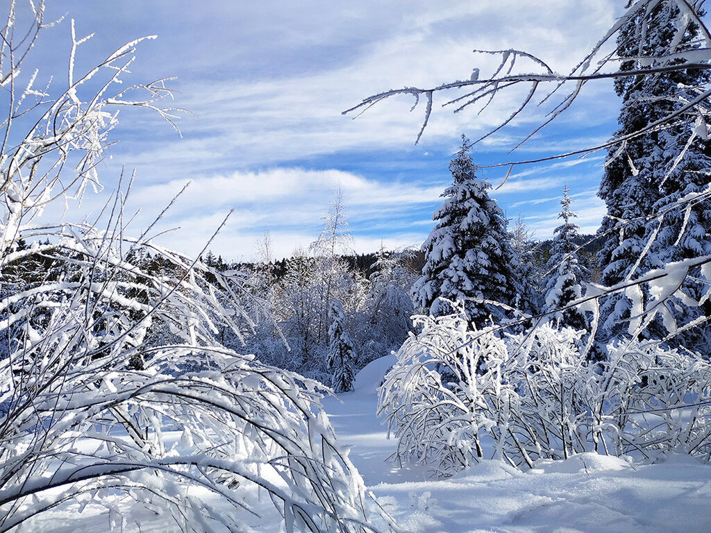 It passes by the small ski slope of the Opheliite area, a favorite of children during the weekend.