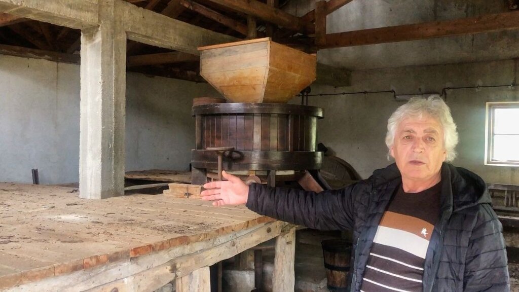 Димитър Неделчев демонстрира как работи старата мелница