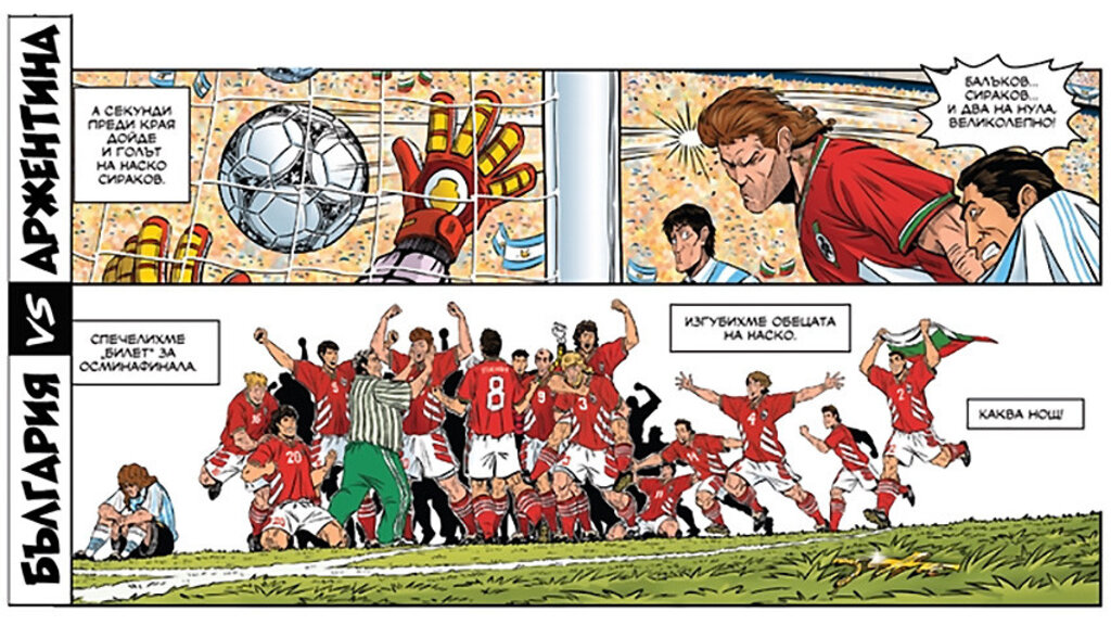 "Generally speaking, the publication is a comic ode to this triumph, not only of Bulgarian football, but of the Bulgarian people in general," one of its authors, writer and director Todor Karagyaurov, tells Radio Bulgaria. The story in the book contains heroism, feats and character development, intertwining historical events and fiction from the world of comics, he adds.