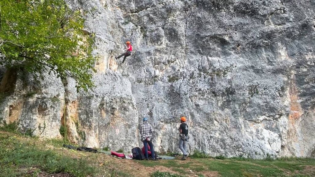 Adjacent to the climbing route is the opening of a small monk's cell, carved in the Middle Ages high into the rocks. In fact, the whole of Polomie is "punctured" by caves and holes, which in the 12th - 13th centuries were carved out by hermit monks and turned into rock monasteries. So, one can combine rock climbing with a visit to these mystical Orthodox temples. Alpinist Hut is currently neglected, the area is overgrown and not well maintained. That is why local enthusiasts have taken up its maintenance: