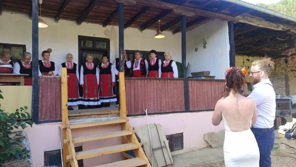 Australians Claudia and Robert Buschaw flew 15,000 kilometres from Sydney to get married according to Bulgarian traditions in the Bulgarian village of Vishovgrad near the town of Pavlikeni, Veliko Tarnovo region. They brought 60 guests from Australia and the UK, as their nonconventional festive wedding was the first in years to take place in the village of 250 inhabitants only. The bride kicked the water bucket, the newlyweds were sprinkled with wheat to have children, and the old ladies from the Vishovgrad Nightingales folk ensemble sang to the wedding guests, who also joined the traditional Bulgarian "horo" (round dance).