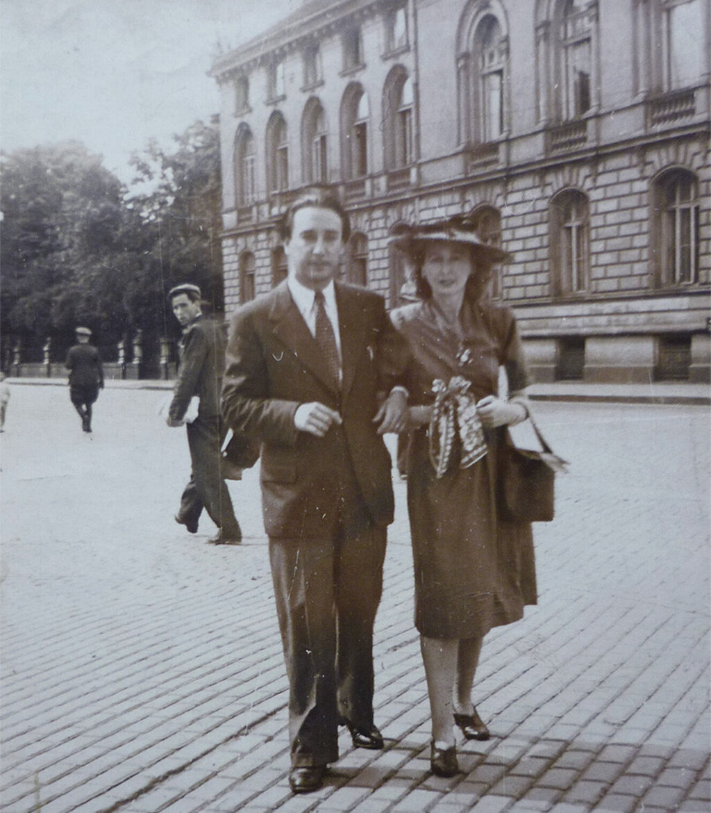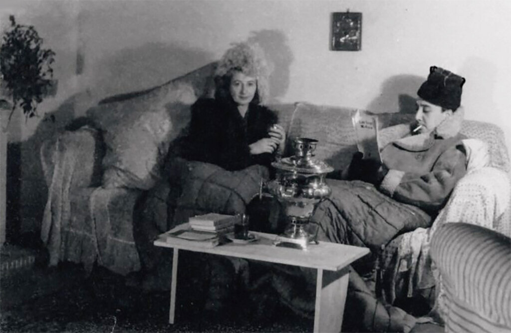 Leslie Blanch and Romain Gary in the living room of their apartment in Sofia. In early 1947, prints of this photograph, the only one they kept from their stay in Bulgaria, were sent to their friends as greeting cards.