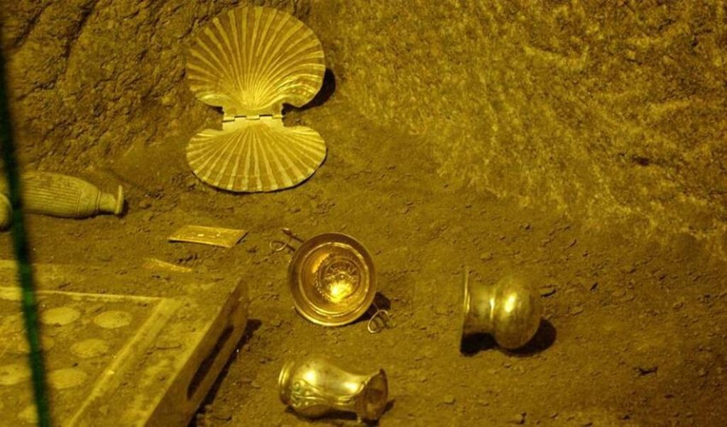 The inscription on the helmet indicates that it belonged to Seuthes. The king's name is also inscribed on two vessels of precious metal. Among the gifts for the afterlife is a gold-woven carpet. There are no human remains in the tomb, suggesting that the ruler died and was buried elsewhere. Most puzzling to archaeologists was a guilded silver box in the shape of a shell, used to store women's cosmetics. It is unlikely that the shell was the most important item in the burial of a warrior king, even if it was a symbolic one. It was probably left there as a final gift from Berenice, the loving second wife of King Seuthes III.