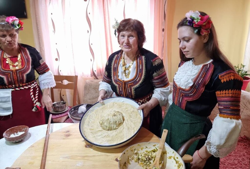 Preparation of the traditional Kyustendil Zelnik by the women's group at the community centre in the village of Zhabokrat.