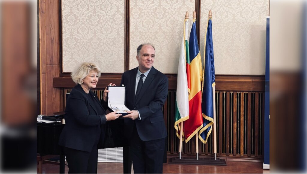 "This is a time of challenges to our beliefs, to our values. I think in this existential crisis we need anchor points. Music is a fortress. And this fortress is you, Maestro," added Predescu before presenting one of Romania's highest honors to the Bulgarian conductor, director of the Sofia Philharmonic and former culture minister in three governments.