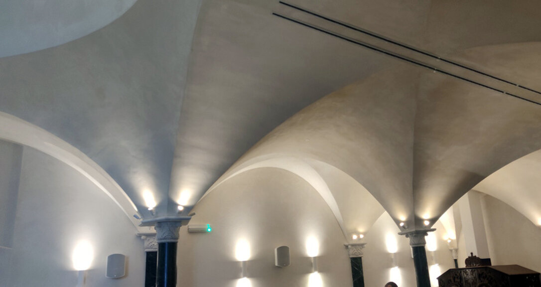 The technique, which involves increasing the volume, requires asymmetrical shapes and arches, which are made according to a special virtual design. Subsequently, a technological design is developed and all components begin to be produced. The ceilings, for example, with all these arches, were made with computer models, as was the dome itself."