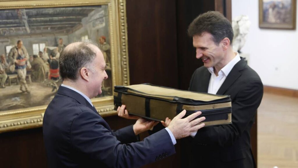 Nayden Todorov presents the Stradivarius violin (1716) to Svetlin Roussev