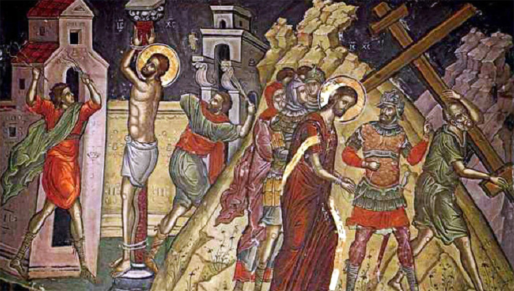 With the heavy cross on His shoulders, Christ was led to a hill called Golgotha, near Jerusalem, to be crucified innocent, for the sins of humanity, between two criminals. In these moments of inhuman suffering and pain, the Savior prays to His Father, not for Himself, but to forgive His tormentors, giving the highest example of love for His neighbor.