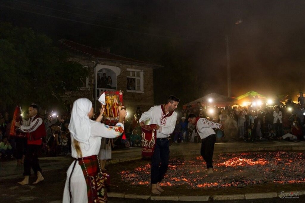 Nestinarstvo, a folk tradition honouring Saints Constantine and Helena, has strong roots in the Strandzha Mountains, where the celebration is called Kostadinovden. A key element of the ritual is dancing barefoot on burning embers. Both men and women can become nestinari, although women are required to be beyond childbearing age.