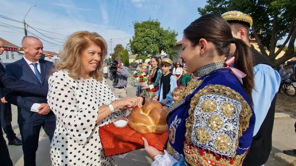The high school's courtyard proved to be crowded for all those wishing to share in the celebration of its 280th anniversary. Iotova was greeted with flowers and cake by children dressed in Bulgarian and Banat Bulgarian costumes. The celebration opened with the anthems of Bulgaria, Romania and the EU, BTA reported.