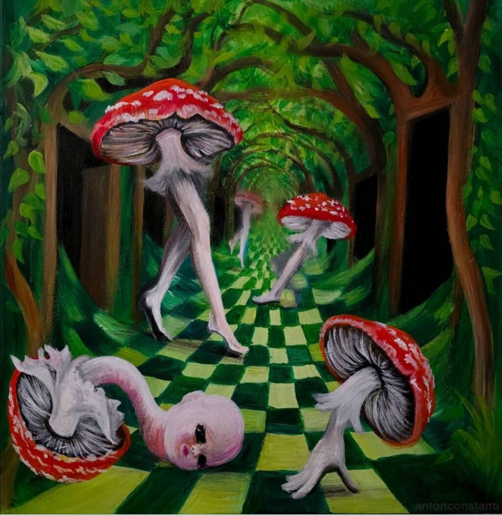 The world created by the artist is beautiful, colorful, enchanting, but at the same time, something seems to whisper to us to be careful about what lies behind the apparent calm, so as not to end up on the other side, where the person can be dismembered and thrown on the road.