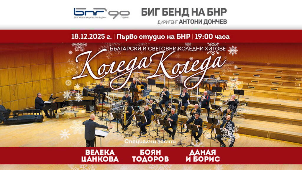 A lot of festive cheer awaits us at the Christmas concert of the Bulgarian National Radio’s Big Band, conducted by Antoni Donchev, which will take place on December 18 in Studio 1 of BNR. The program features both international hits and popular Bulgarian songs dedicated to the upcoming holidays. They will be performed by singer Veleka Tsankova, actor and singer Boyan Todorov, and ten-year-olds Danaya and Boris – students of the vocal teacher Tyurkian Sali.