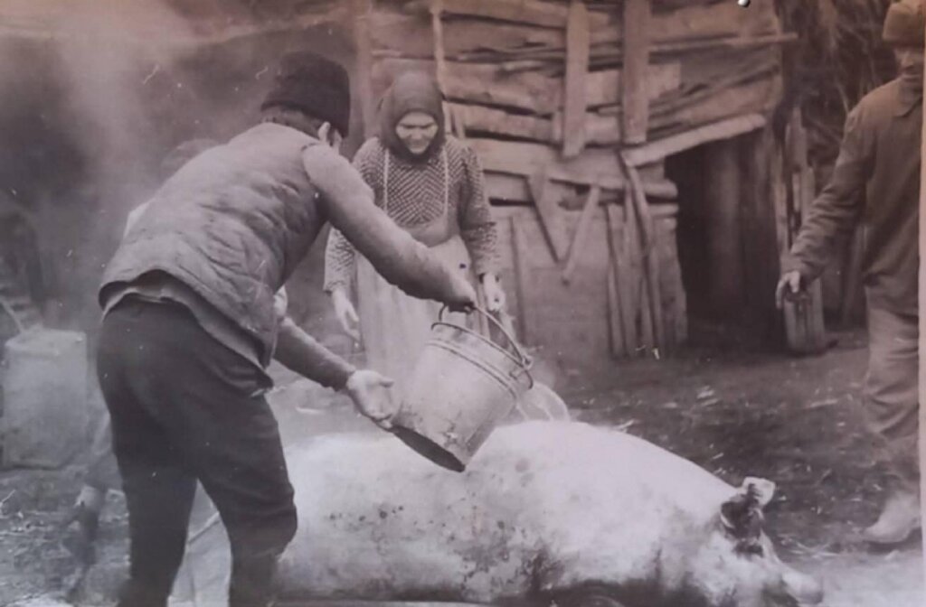 On the next day, December 26, the whole village echoed with the sharpening of knives - the great pig slaughter began. This was a time of communal sharing; men were treated to mulled rakia, and women distributed prisnina (fresh meat and bacon) to neighbors who did not have a pig. The thickness of the bacon was the pride of the homeowner and a measure of his prosperity.