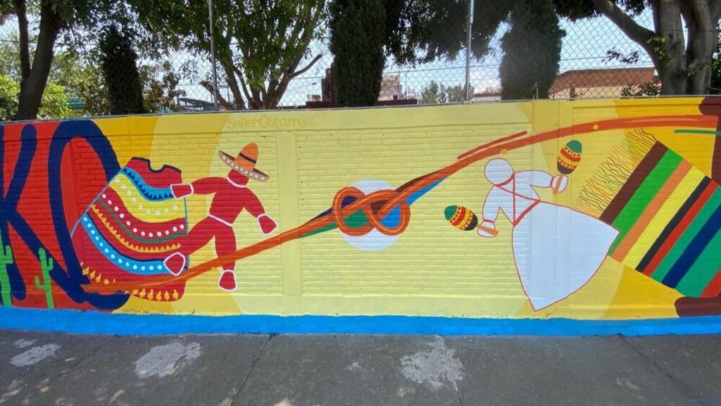 The artists also said that the project has an educational aim. The word 'Mexico' is written in Cyrillic to draw students' attention to the Bulgarian alphabet. A unifying element in the composition is a thread that runs through the entire image and is woven together at the centre, symbolising connection and unity.