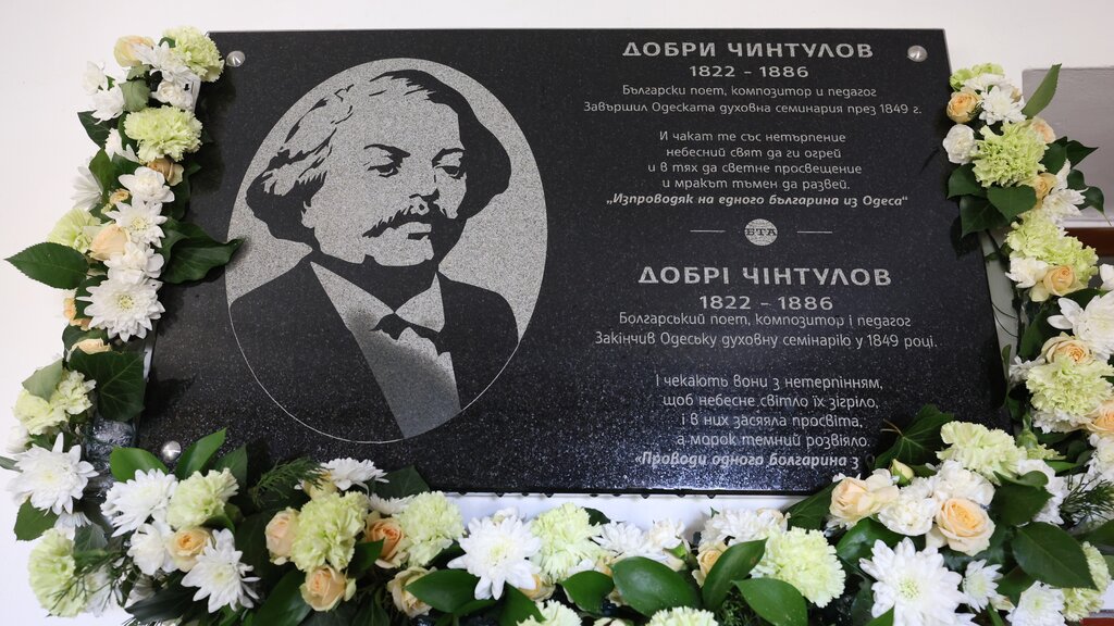 A memorial plaque dedicated to the Bulgarian poet, composer, and educator Dobri Chintulov was unveiled and consecrated on April 15 at the Odessa Theological Seminary, in the presence of a Bulgarian delegation, representatives of the Ukrainian Orthodox Church, and members of the Bulgarian community in Ukraine.