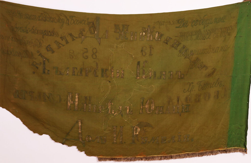 "However, this lion cub seems "lean" to them, and when they gave it to Nedyalka Shileva to sew the cloth as a flag, they asked her to write some patriotic words. She beautified the flag appropriately, writing the words "Unification of Bulgaria", the year 1885, "Freedom or death", Lyuben Karavelov's poems "I do not believe that a monk will save the people", and others. Today, the original flag is kept in the Regional History Museum in Plovdiv".