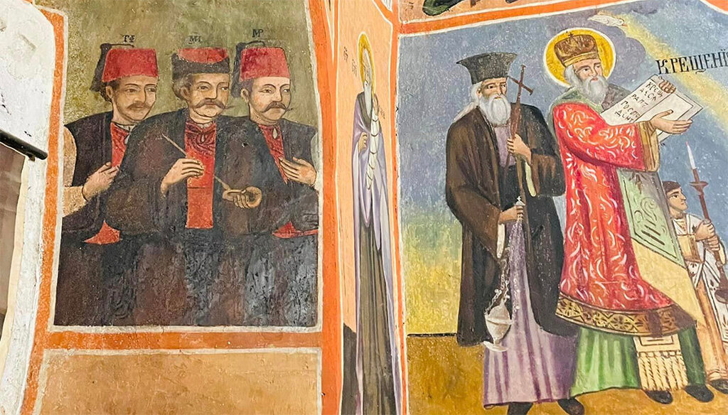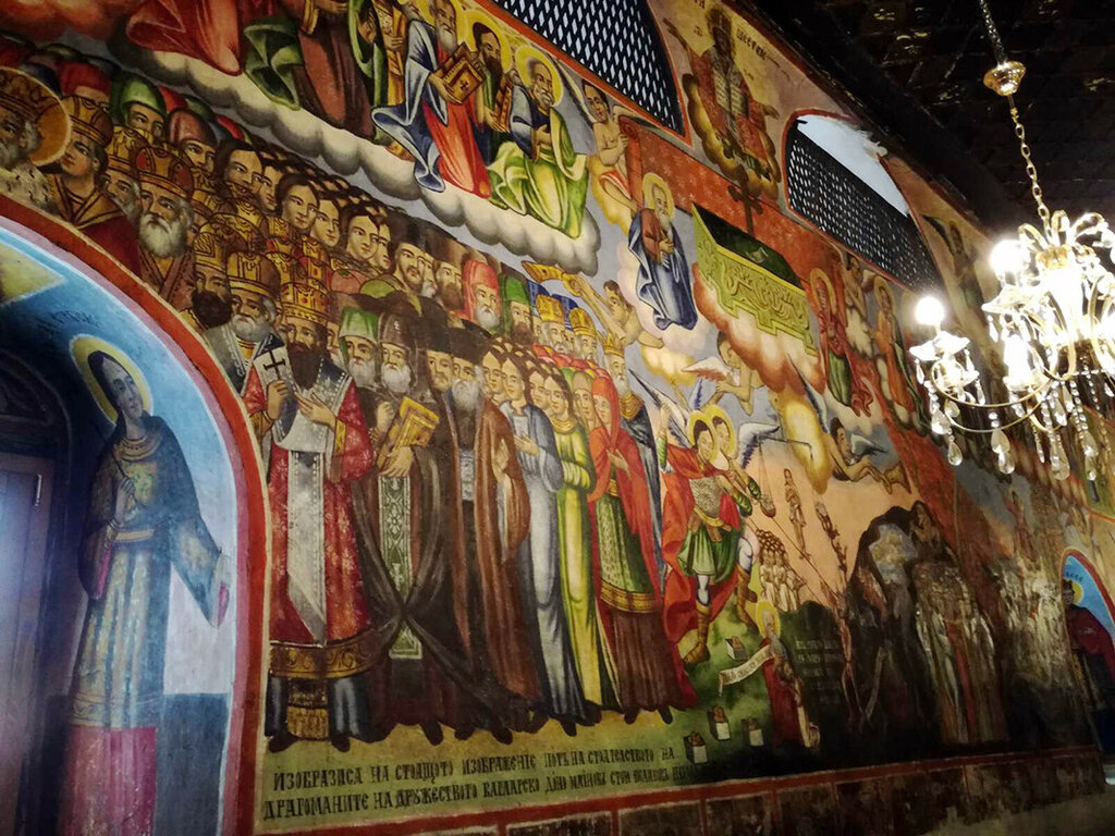 The rich wall paintings are interesting in terms of drawing and plot - apart from the traditional biblical scenes, they depict historical memories of the former greatness of Bulgaria. It is the work of the painter Mino and his two sons Marko and Teofil from the Bundovtsi family from the village of Karakoi (today's Greece).
