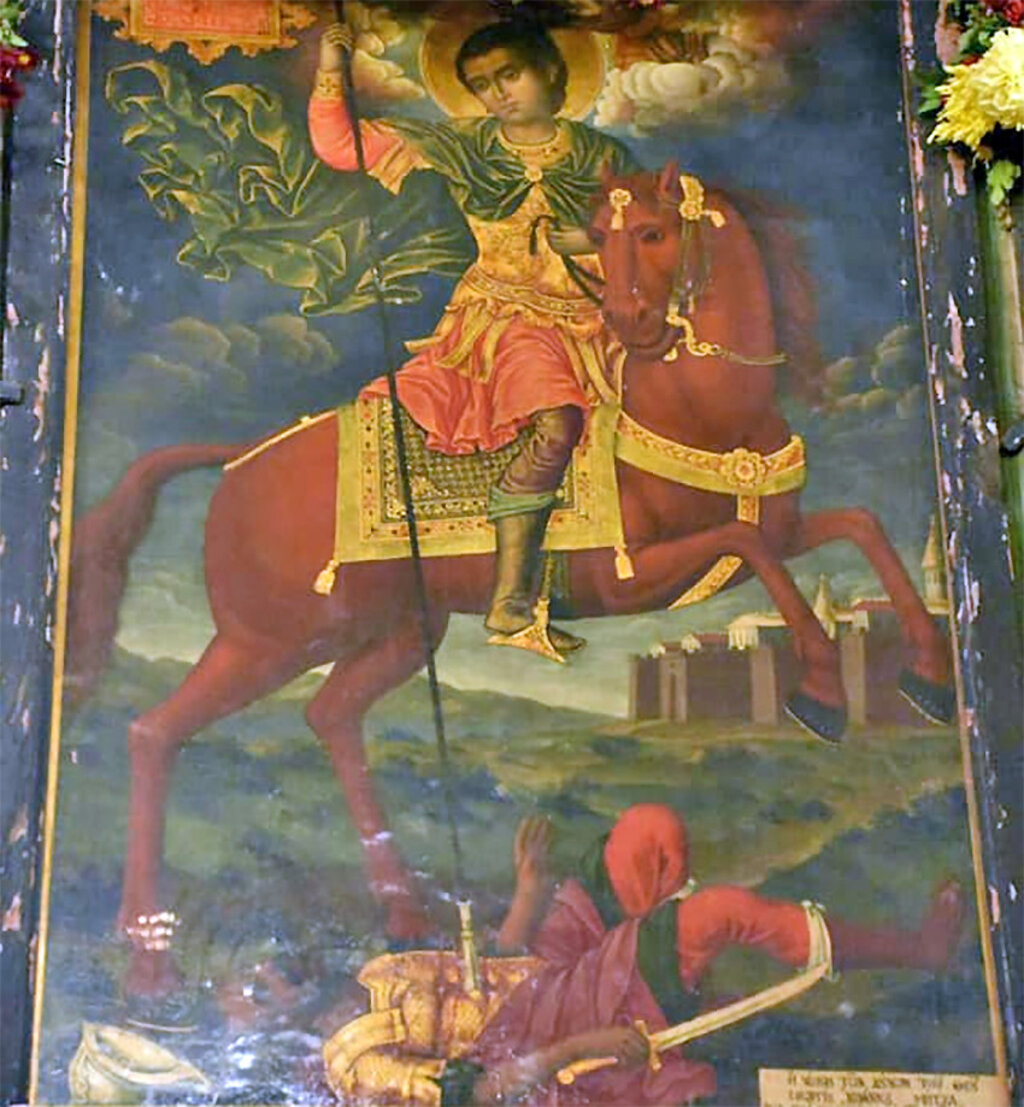 The respect to St. Demetrius of Thessaloniki is widespread in the Balkans, as many churches in Bulgaria bear the name of the saint, depicted in the icons as a warrior on a red horse, piercing with his spear the general who was destroying the believers in Christ.