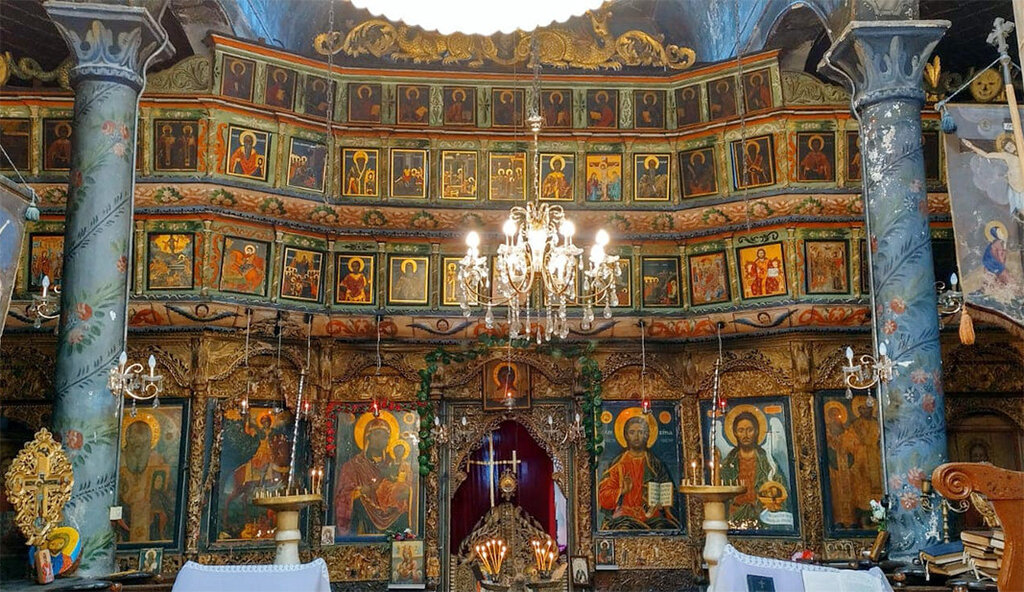 The Saint Demetrius Church is a three-nave pseudo-basilica with a semicircular apse. The built dome visually increases the interior space and the light entering it, and the acoustics of the church is remarkable.
