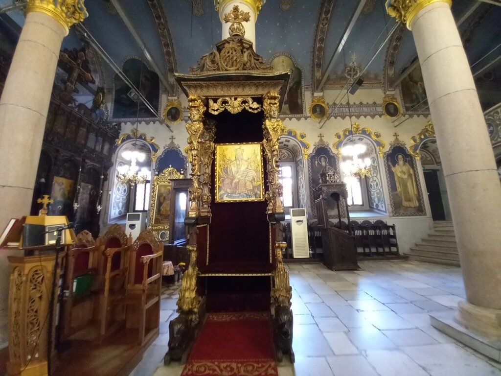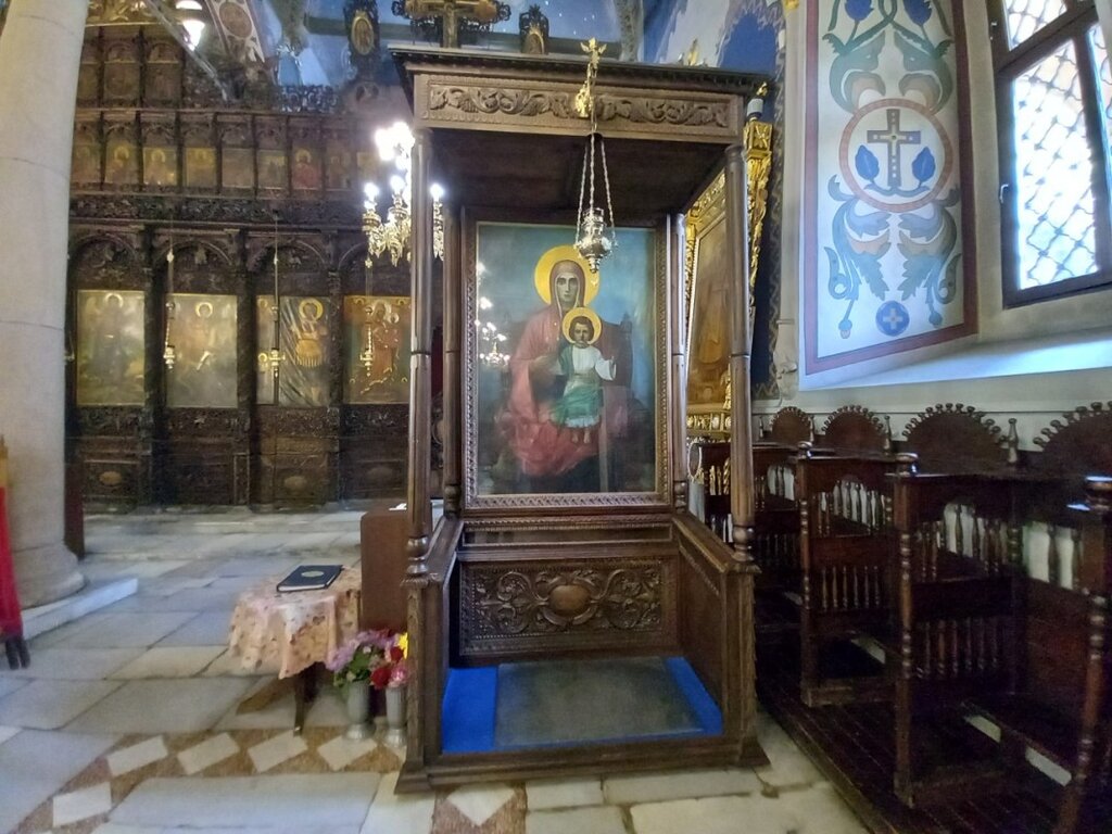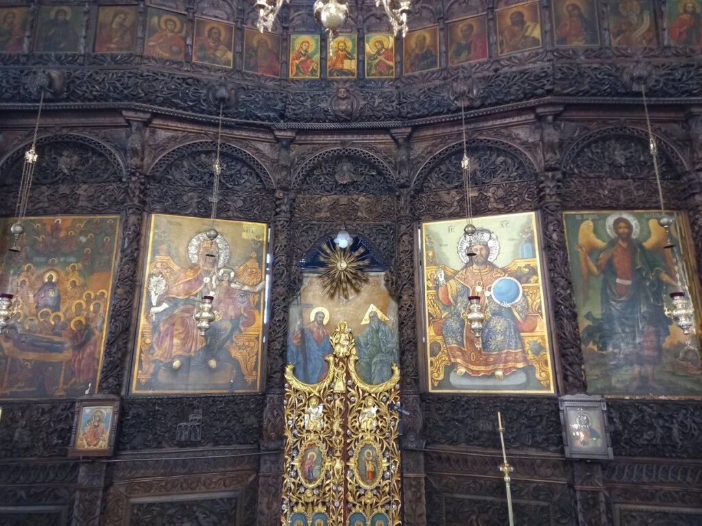 El mayor hito del templo es su iconostasio tallado en madera de nogal, de unas dimensiones impresionantes: 20,40 x 6 m, con una superficie de más de 120 metros cuadrados.