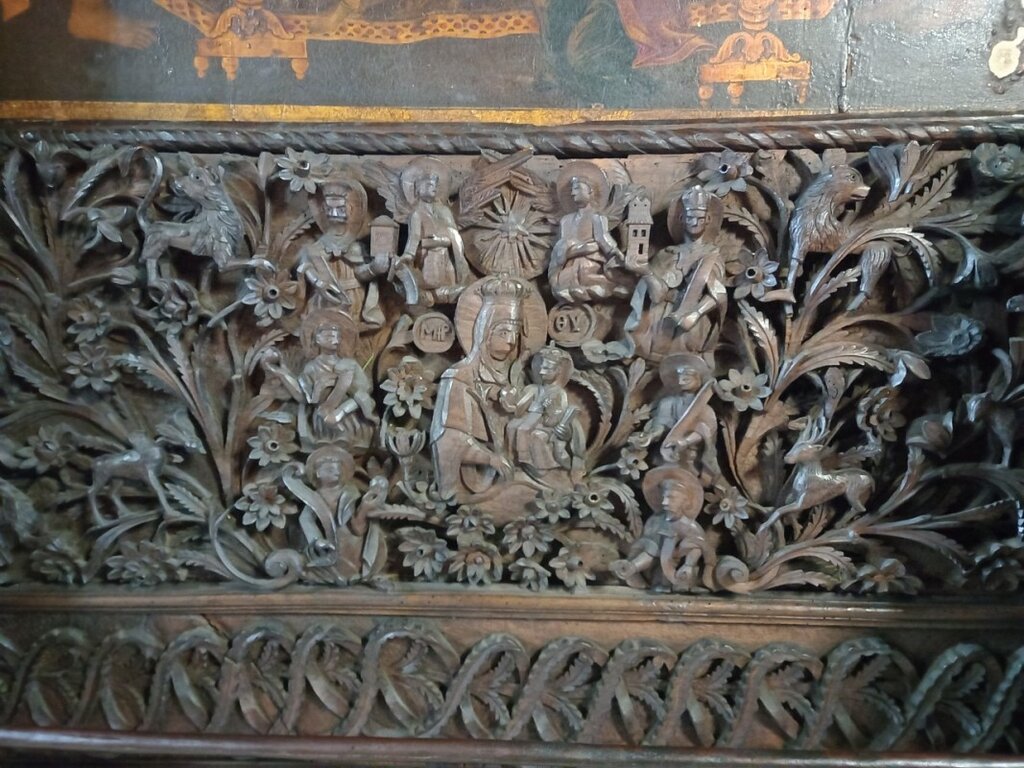 “El trono del obispo fue ensamblado con objetos que la gente traía, a modo de ofrendas a Dios”, explica nuestro interlocutor. “Sus patas provienen de un escritorio barroco. Las columnas que lo sostienen eran parte del dosel de un gran dormitorio barroco. Nosotros, hoy día, le daríamos un valor muy elevado a todas estas piezas, pero su valor ahora es mucho mayor por el hecho de que nuestros antepasados las donaron para decorar el templo."