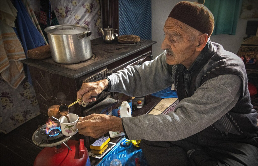 El abuelo Sally ya roza los 90 años, pero sigue recibiendo turistas en su antigua casa de piedra, en el pueblo de Bashevo. Uno no puede pasar por su casa sin tomarse un café turco (café de puchero), que él mismo prepara mientras abre su corazón e invita a su huésped a la conversación. Cuando se le pregunta por qué la gente construye precisamente fuentes de agua para conmemorar a sus seres queridos fallecidos, el hombre responde:
