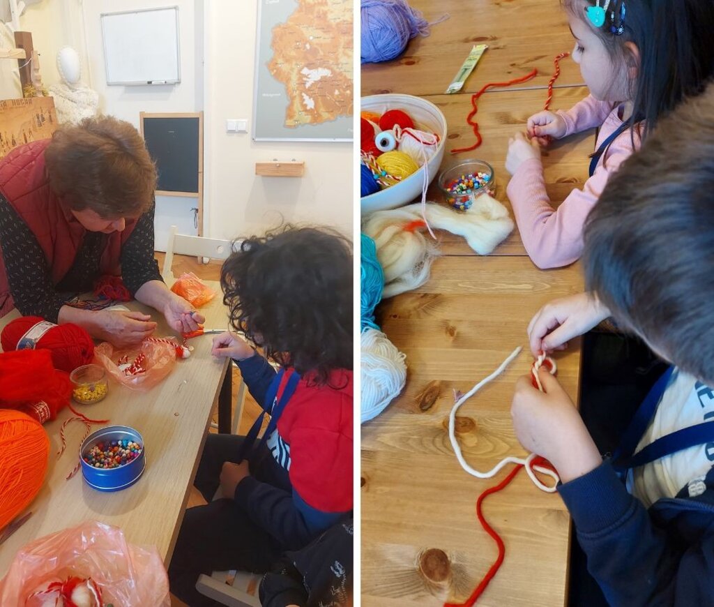 "Desde tiempos de la sociedad tradicional, las martenitsas solían ser elaboradas por la mujer mayor de la familia, aquella que ha vivido más y posee una vasta experiencia. En aquel entonces, para hacer las martenitsas, se recogía la lana de las ovejas que quedaba atrapada en los arbustos del campo. Esta lana, no era esquilada por las ovejas, sino que caía y quedaba sola bajo las estrellas, reunía el poder mágico de todas las hierbas de los prados. Una parte de ella se teñía de rojo, y la otra de blanco."