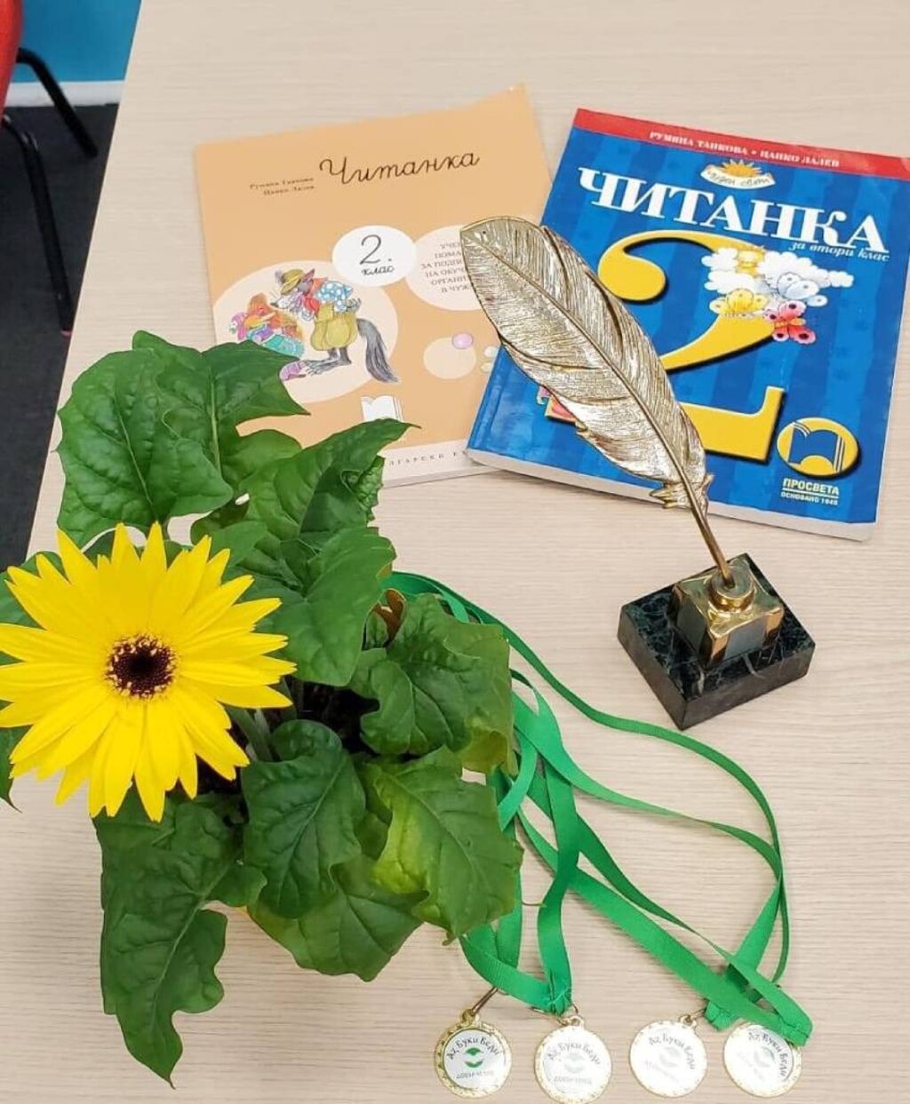 "De cada escuela participan dos alumnos de 1º y 2º grado", explica Rositsa Bairaktarski, directora de la escuela de Colonia y profesora de lengua y literatura búlgaras. "En la primera ronda se leen textos conocidos, extraídos de los libros de lectura de los alumnos de 1.º grado de los anfitriones. En la segunda, los participantes leen un texto desconocido en prosa, lo que tampoco supone un gran reto para ellos. Intentamos que los fragmentos seleccionados no contengan palabras desconocidas ni arcaísmos, que sean claros y con frases cortas. Solo los mejores pasan a la tercera ronda, en la que se lee en lenguaje mesurado. A lo largo de los años se han oído voces a favor de eliminar esta ronda, pero nosotros la mantenemos porque creemos que no debemos renunciar por completo a la poesía. Algo que cambiamos el año pasado es que, al principio, damos un poco de tiempo a los niños para que se preparen, para que sientan el ritmo antes de leer el poema ante el jurado. No deben sentirse sobrecargados ni frustrados, sino ganadores por el hecho de poder leer".