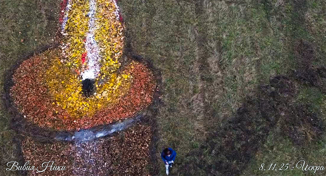 La pintora y arquitecta búlgara Vivia Niki presentó su nueva obra de Land Art que es una gigantesca vela pintada en un campo en medio de los bosques de los Montes Balcanes que tiembla como si fuera viva desde un ángulo concreto y si se observa desde el aire. La obra fue creada íntegramente por materiales naturales: hojas otoñales, hierba y humus.