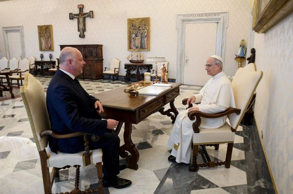 Le pape Léon XIV a reçu ce vendredi 23 mai lors d’une audience au Vatican le premier ministre bulgare, Rossen Jéliazkov, qui lui a offert un omophore spécialement brodé, comme rapporté par le service de presse du gouvernement. L'omophore est une large et longue bande d'étoffe de soie, brodée et ornée de croix, que les patriarches et les métropolites portent autour du cou depuis les premiers siècles. C'est l'équivalent grec du pallium dans l'Église latine mais qui n'est porté que par le pape, et certains archevêques, alors qu'il est aussi porté par les évêques dans les Églises orientales. Une extrémité tombe par-derrière sur l'épaule et l'autre par-devant jusqu'aux genoux. Pour mémoire, le pape François est apparu à ses dernières Pâques portant un omophore bulgare, reçu en cadeau lors de sa visite en Bulgarie en 2019.