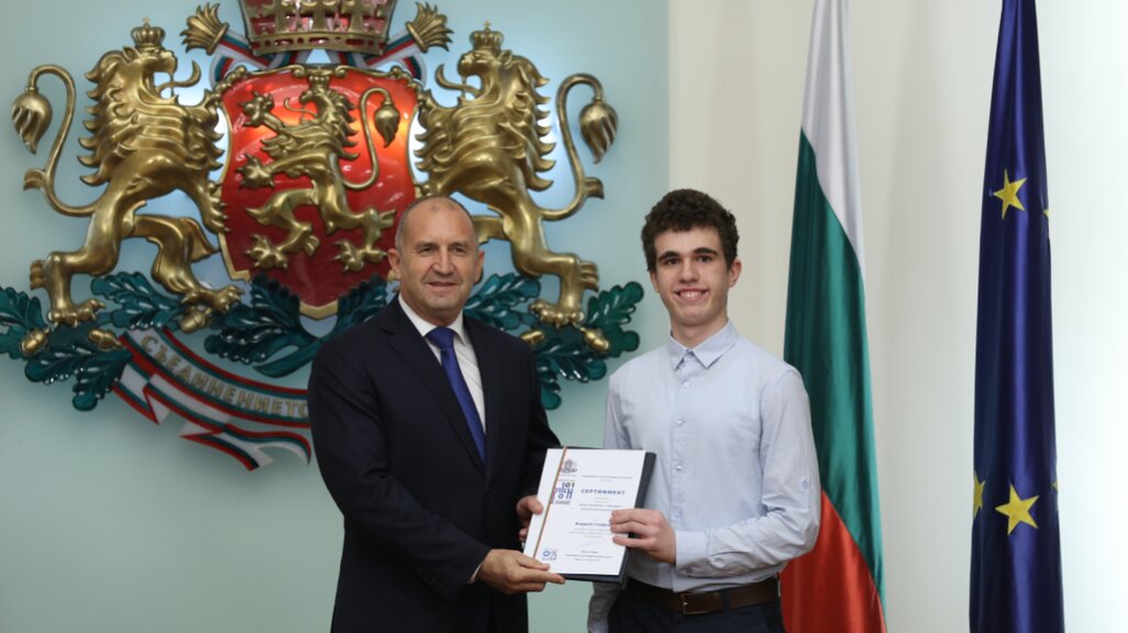 Une des autres personnes récompensées par le président est Mario Pétrov, élève en dernière année au Lycée professionnel d’électronique et de technologies chimiques "Assen Zlatarov" de Pléven :