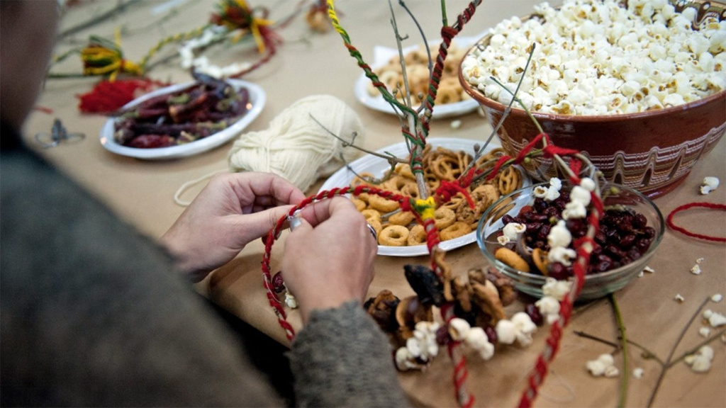La sourvatchka, c’est le symbole de la santé, la force, la résistance et l’abondance. D’où l’importance de ses décorations qui diffèrent d’une région ethnographique à l’autre. On décore la branche de cornouiller de fruits secs, de fils de laine multicolores, de menus objets ou friandises /perles de verroterie ou pop-corn/ qui symbolisent la santé et l’abondance. Et comme il s’agit de symboles, il faut utiliser que des produits naturels, comme par exemple des fils de laine, piments, haricots, pop-corn, papiers multicolores, etc. L’autre côté important de ce rite, ce sont les vœux. Ils sont nombreux, mais on souhaite toujours de la santé et de la richesse.