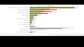 D’après cette enquête réalisée entre le 9 et le 15 février auprès de 812 Bulgares majeurs, la formation autour de l’ancien président Roumen Radev occupe la première place avec 33,3% des intentions de vote, suivie de GERB – UFD (18,9%), PLC-BD (12,7%), "MDL – Nouveau départ" (10,7%) et "Renaissance" (6,8%). Avec respectivement 3,9 и 3,7%, SABRE et le PS frôlent le seuil d’entrée au parlement. "Grandeur", "Il y a un tel peuple" et l’ADL resteront hors du parlement.