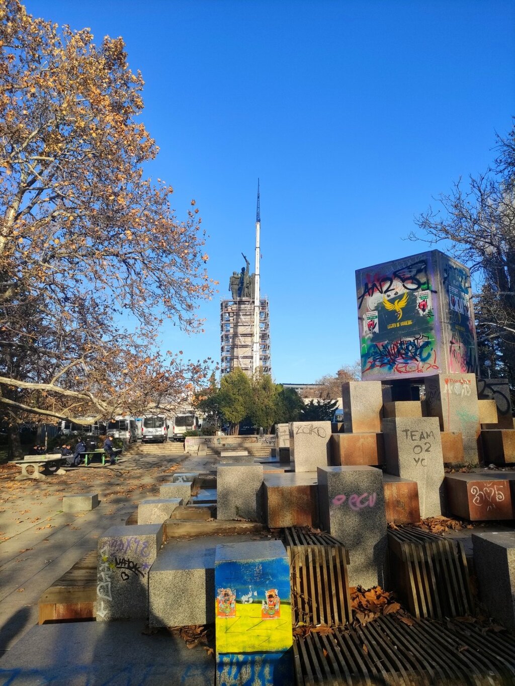 Районът на паметника е отцепен от 12.12.2023 г. Снимка: Лора Търколева